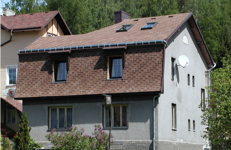 Верхний слой мягкой кровли, хорошо видимый на фото, покрыт натуральными каменными гранулами, защищающими кровлю от негативных внешних воздействий и обеспечивающими ее сохранность на многие десятилетия.