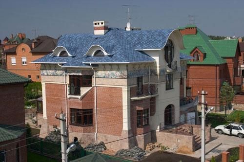 Верхний слой мягкой кровли, хорошо видимый на фото, покрыт натуральными каменными гранулами, защищающими кровлю от негативных внешних воздействий и обеспечивающими ее сохранность на многие десятилетия.