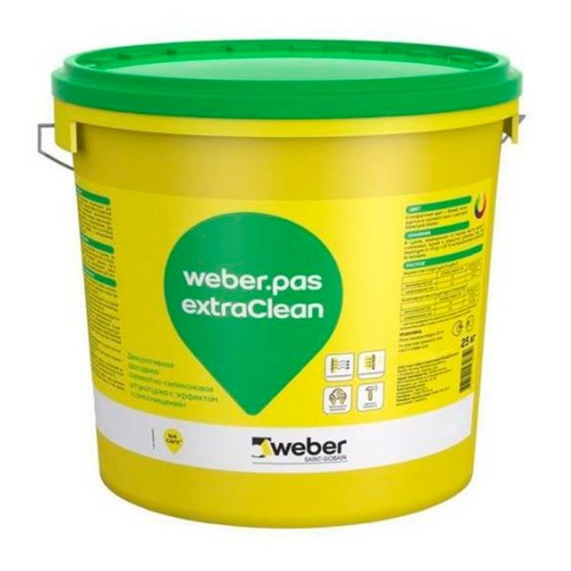Декоративная силикатно-силиконовая штукатурка weber.pas extraClean "короед" 1,5 мм, транспорентная база, 25 кг