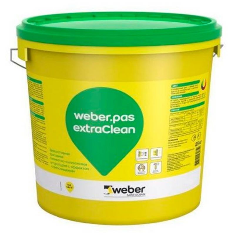 Декоративная силикатно-силиконовая штукатурка weber.pas extraClean "шуба" 1,5 мм, транспорентная база, 25 кг